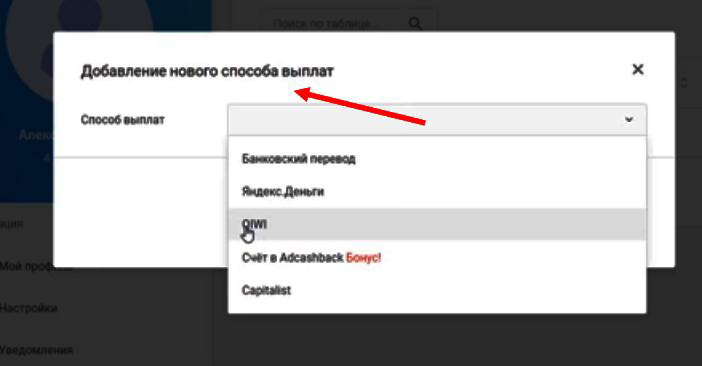 3. Теперь вам нужно выбрать платежную систему на которую вы будете выводить заработанные деньги.