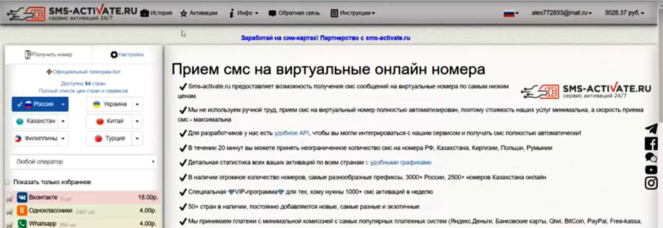 Теперь берете номер телефона из вашей рекламной кампании в рабочем кабинете партнерской программы и идете на сервис предоставляющий активацию СМС (их много - выбирайте который вам по душе)