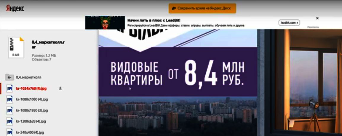 Здесь рекламодатель предлагает скачать с яндекс диска всю необходимую рекламную информацию (тексты, картинки, баннеры и т.д.)